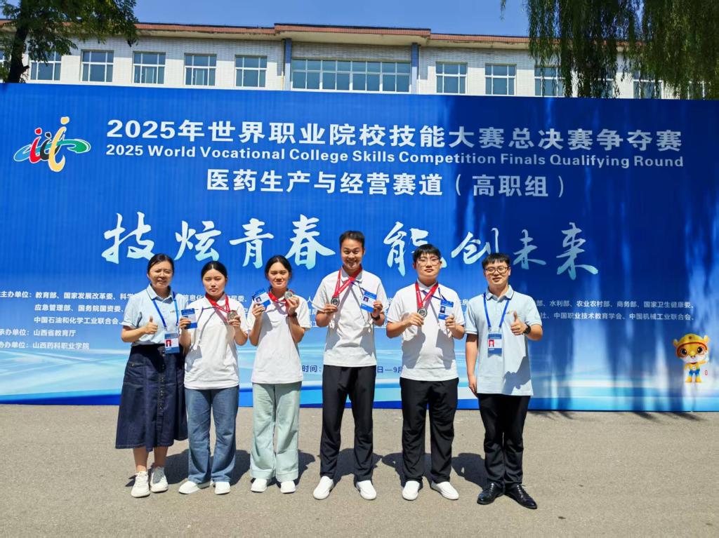 9月1日,2025年世界职业院校技能大赛医药生产与经营赛道(高职组)在太原山西药科职业学院圆满落幕。全国154支队伍同台竞技,经过激烈角逐,医学院参赛团队凭借扎实的专业功底、默契的团队协作以及对医药生产流程的精准把控,最终斩获银奖。