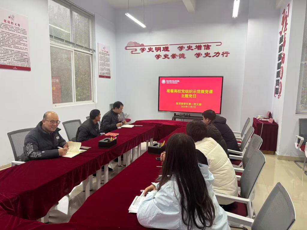为深入学习贯彻习近平新时代中国特色社会主义思想,筑牢党员理想信念根基,切实把党的创新理论转化为服务人民健康的实际行动,11月7日,医学院学生第一党支部组织全体党员开展“观看高校党组织示范微党课”主题党日活动,推动党性教育走深走实。